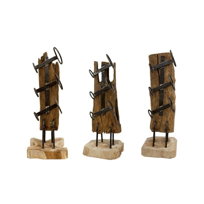 Teakhouten wijnrek voor 3 flessen