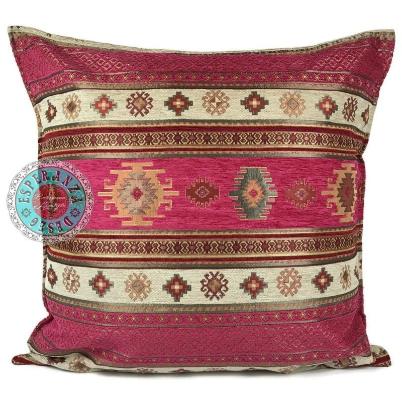 Aztec hardroze kussenhoes ± 70 x 70 cm
